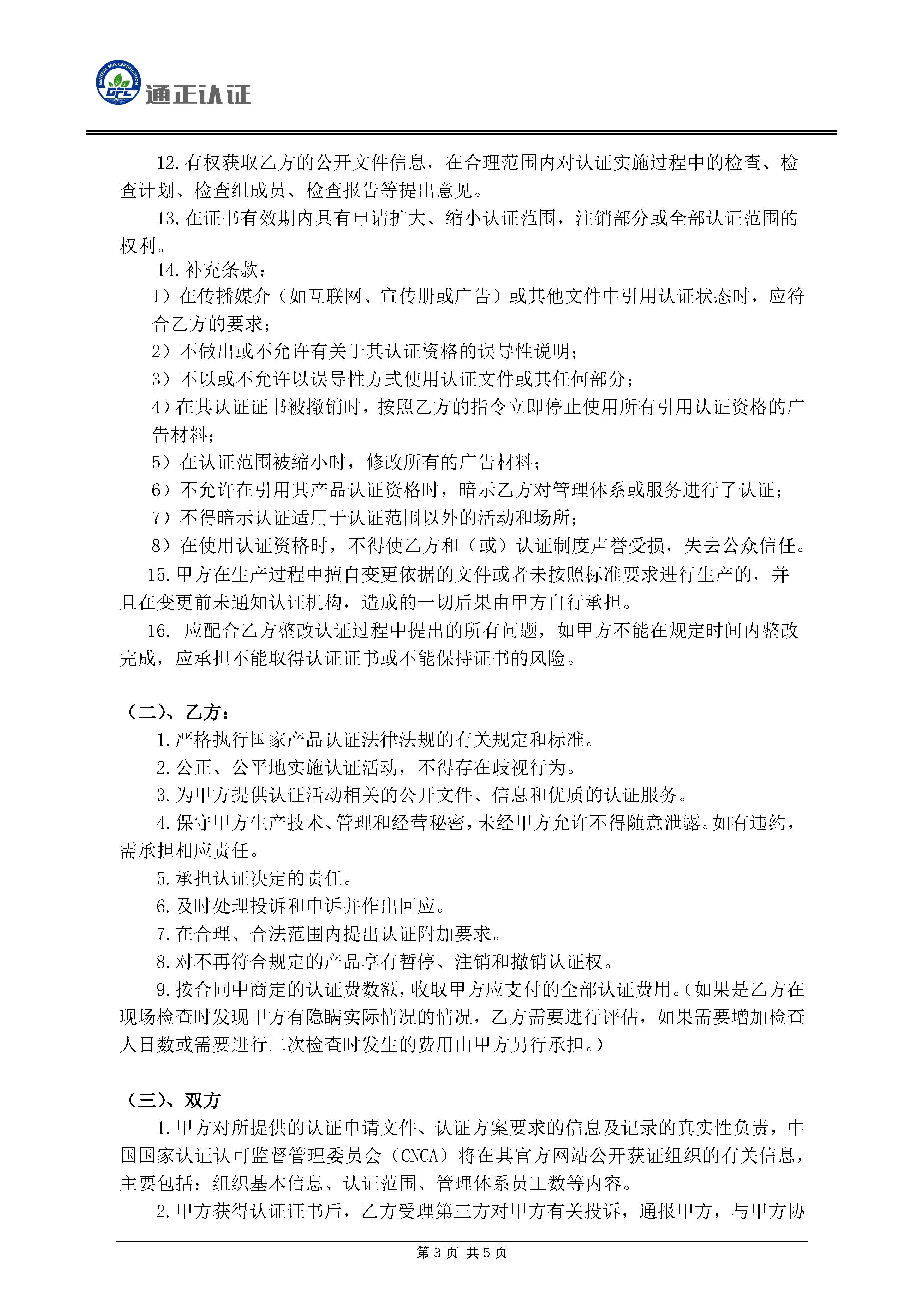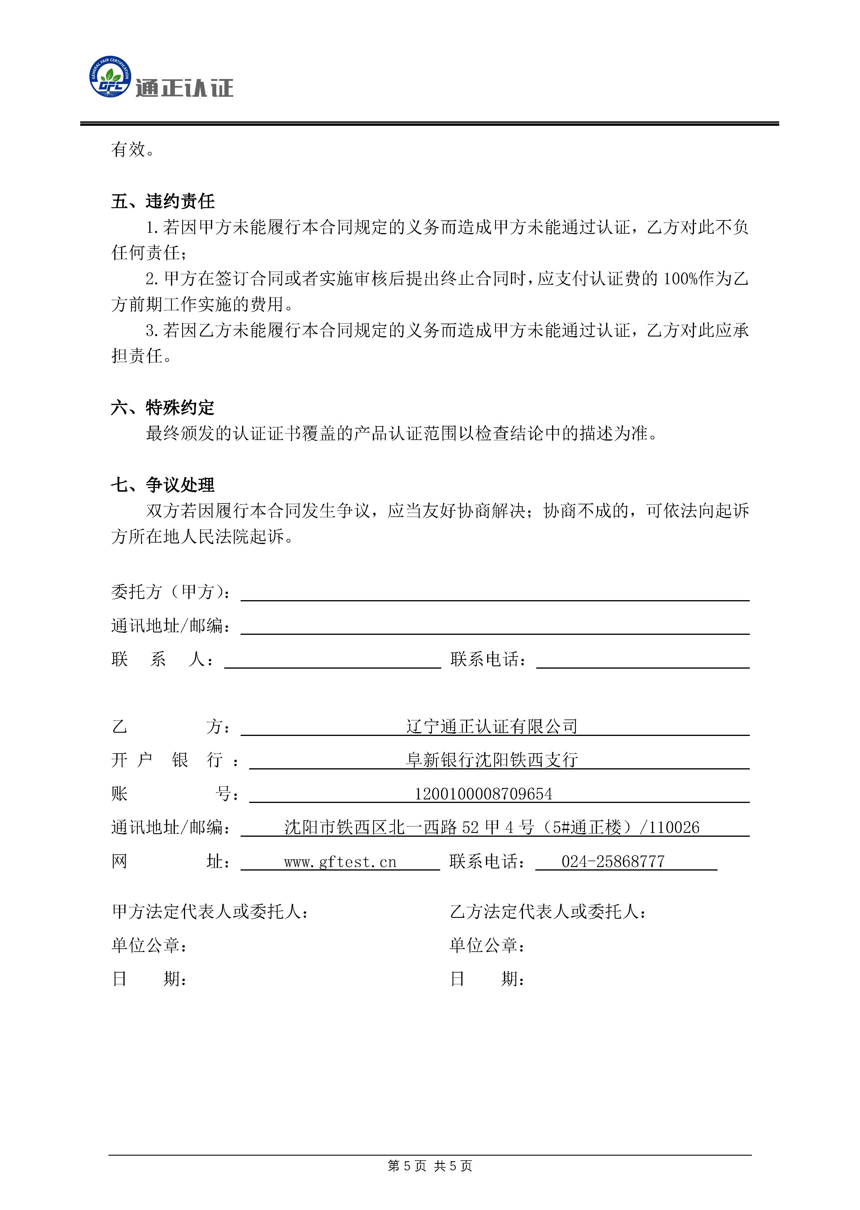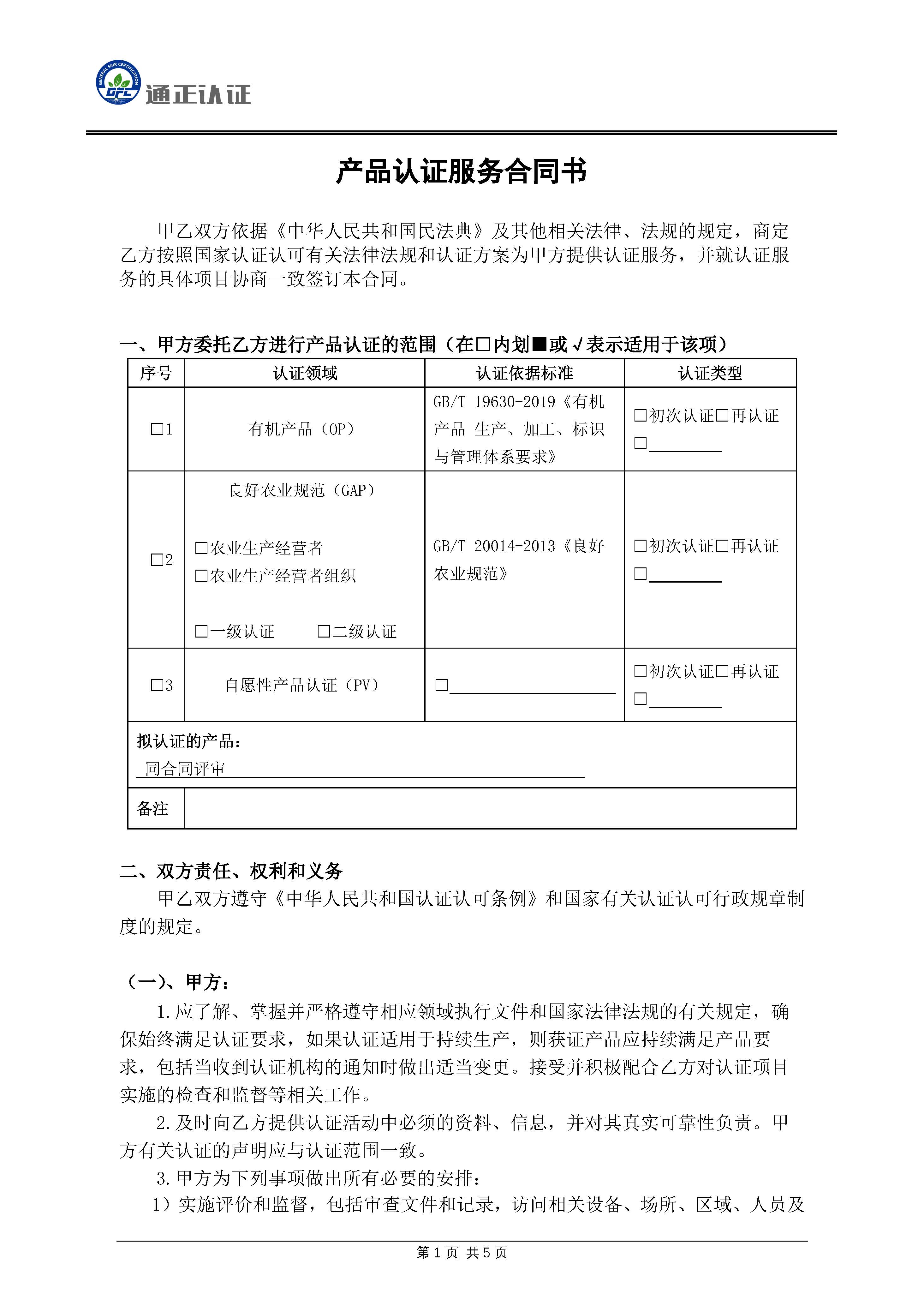 GFC產(chǎn)品認(rèn)證服務(wù)合同書